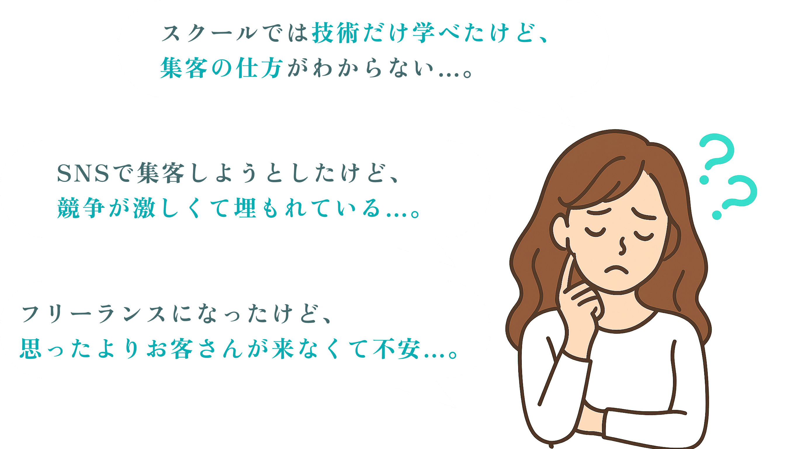 特に独立や副業を考えられている方は、技術を学んでも集客ができずに困る方が多いです。