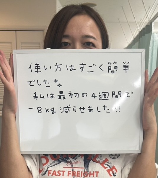 私はたった4週間で−8kgを実現!今まで何をやっても挫折していた私が、無理なく成功できたことに本当に感動しています。